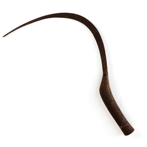 คำอธิบาย : เป็นเครื่องมือเกี่ยวข้าว และหญ้า ทำด้วยเหล็กรูปโค้งพระจันทร์เสี้ยว มีคม มีด้ามจับ |