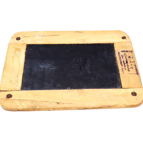 | คำอธิบาย : มีลักษณะทำจากหิน เป็นแผ่นแบน หน้าเรียบ ตัดเป็นแผ่นรูปสี่เหลี่ยมผืนผ้า เข้ากรอบไม้กันขอบแผ่นหินปริแตก สำหรับเขียนหนังสือ, บันทึกข้อความ |