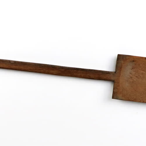 | คำอธิบาย : เป็นไม้ ด้ามยาว รูปร่างคล้ายพาย ทำจากไม้เนื้ออ่อนเพื่อให้มีน้ำหนักเบา สำหรับใช้ตักข้าวเปลือกสาดขึ้นไป เพื่อให้ลมพัดแกลบออกไป (แยกข้าวเปลือก) |