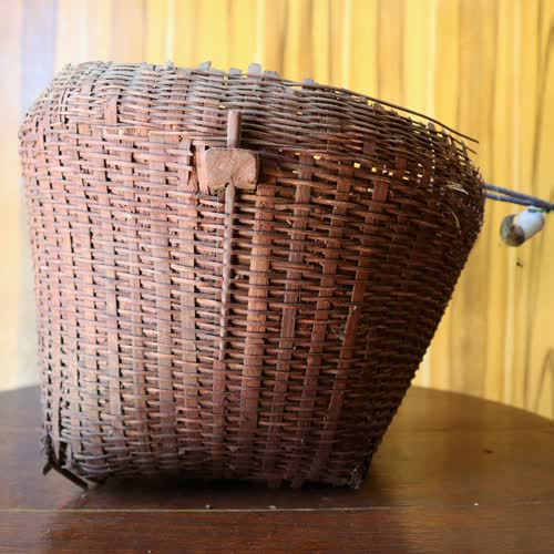 | คำอธิบาย : มีลักษณะทำจากไม้ไผ่สานรูปร่างคล้ายถังน้ำ มีหูหิ้ว ยาชันกันรั่ว ใช้สำหรับตัก หรือหาบน้ำ |
