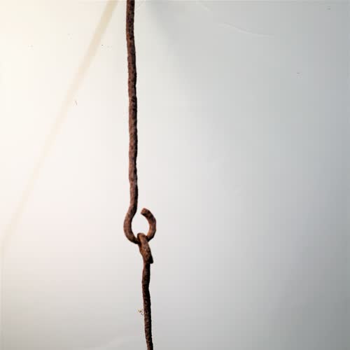 | คำอธิบาย : มีลักษณะเป็นเหล็กเส้น ๒ เส้น เกี่ยวกันปลายด้านหนึ่งงอเอาไว้คล้องเกี่ยวครุเพื่อหาบน้ำ |