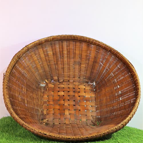 | คำอธิบาย : มีลักษณะทำจากไม้ไผ่สาน เป็นรูปทรงเตี้ย ปากกว้างก้นสอบ ใช้สำหรับใส่ของหาบ |