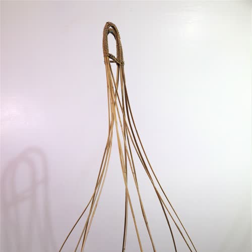 | คำอธิบาย : มีลักษณะทำจากหวายถัก มี 4 สาย ตอนบนทำเป็นหูสำหรับหิ้ว หรือสอดไม้คานเพื่อหาบ ตอนล่างขัดกันเป็นสี่หรือหกเหลี่ยมสำหรับวางกระจาดหรืออุปกรณ์อื่น ๆ |