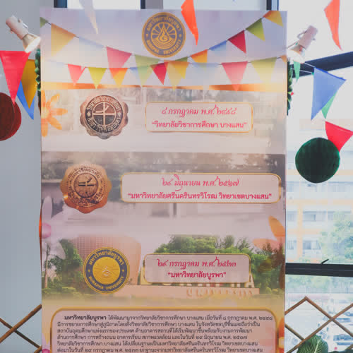 | คำอธิบาย : การจัดนิทรรศการประกอบการแสดงคอนเสิร์ตลูกทุ่งมหาวิทยาลัยบูรพาและมหาวิทยาลัยเกษตรศาสตร์เพื่อเชื่อมชีวิตชุมชน : EP พิเศษ ลูกทุ่งสองบาง ดาวกระจุยบางเขน เยือนบูรพาบางแสน วันที่ 16 ธันวาคม พ.ศ. 2566 ณ บริเวณชั้น 2 หอประชุมธำรง บัวศรี มหาวิทยาลัยบูรพาโดยภายในนิทรรศการนำเสนอถึงประวัติท่านศาสตราจารย์ ดร.ธำรง บัวศรี และความเป็นมาของการปรับปรุงหอประชุมธำรง บัวศรี |
