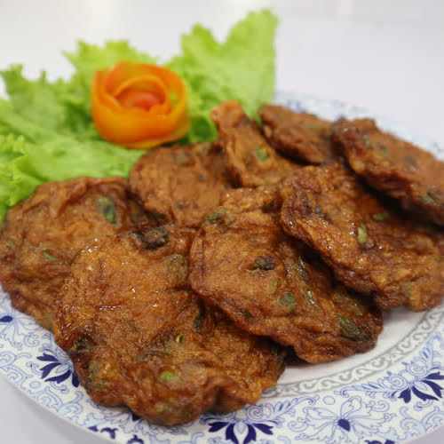 | คำอธิบาย : ทอดมันปลา เป็นอาหารไทย ถือเครื่องเคียงชนิดหนึ่ง ในปัจจุบันนอกจากจะกินเป็นกับข้าวแล้ว สามารถกินเป็นอาหารว่างได้อีกด้วย |