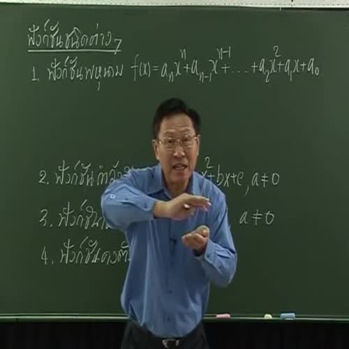 | คำอธิบาย : คณิตศาสตร์ (รศ.สมัย เหล่าวานิชย์) เรื่อง ความสัมพันธ์และฟังก์ชัน ep03-5 : ฟังก์ชันชนิดต่างๆ ได้แก่ ฟังก์ชันพหุนาม, ฟังก์ชันกำลังสอง, ฟังก์ชันเชิงเส้น, ฟังก์ชันคงตัว, ฟังก์ชันกำลังสอง |
