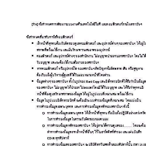 | คำอธิบาย : (ร่าง) ข้อกำหนดการพัฒนาระบบงานด้วยเทคโนโลยีไอที และคอมพิวเตอร์ภายในสถาบันฯ |