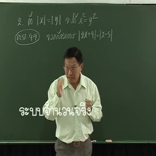 | คำอธิบาย : คณิตศาสตร์ (รศ.สมัย เหล่าวานิชย์) เรื่อง จำนวนจริง ep04-1 : การแก้สมการของค่าสัมบูรณ์ |