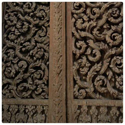 "บานประตูไม้จำหลัก วัดดอนสัก".