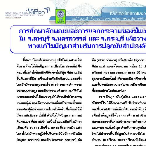 "การศึกษาลักษณะการแจกกระจายของชั้นเปราะใน จ. ลพบุรี จ. นครสวรรค์ และ จ. สระบุรี เพื่อวางแนวทางแก้ไขปัญหาสำหรับการปลูกมันสำปะหลัง".