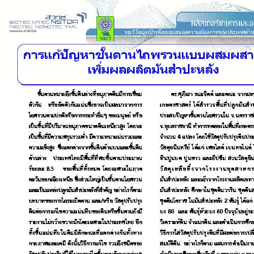| ชื่อเรื่อง : การแก้ไขปัญหาชั้นดานไถพรวนแบบผสมผสานเพื่อเพิ่มผลผลิตมันสำปะหลัง |