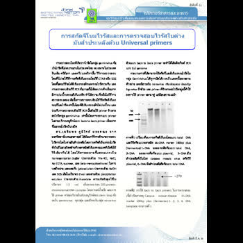 | ชื่อเรื่อง : สารสกัดจีโนมไวรัสและการตรวจสอบไวรัสใบด่างมันสำปะหลังด้วย Universal primers |