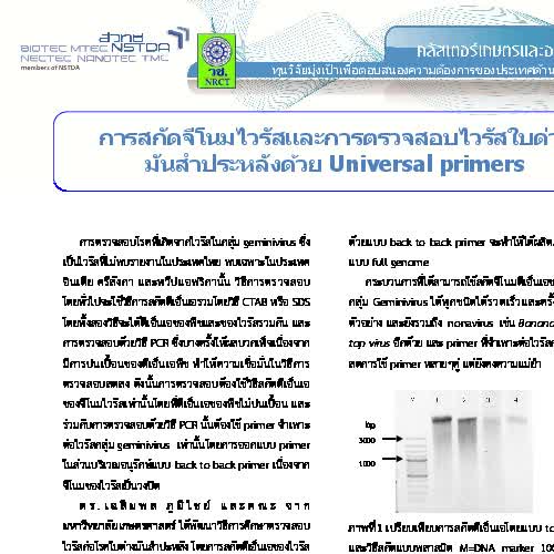 "สารสกัดจีโนมไวรัสและการตรวจสอบไวรัสใบด่างมันสำปะหลังด้วย Universal primers".