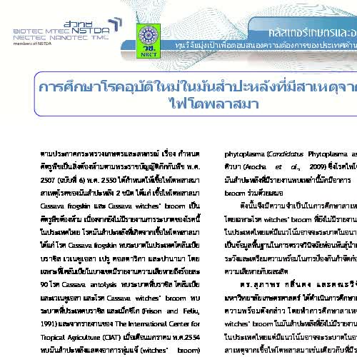 "การศึกษาโรคอุบัติใหม่ในมันสำปะหลังที่มีเชื้อสาเหตุจากเชื้อไฟโตพลาสมา".