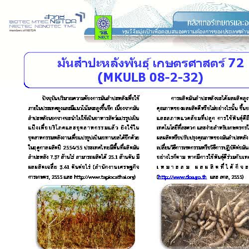 "มันสำปะหลังพันธุ์ เกษตรศาสตร์ 72 (MKULB 08 - 2 - 32)".