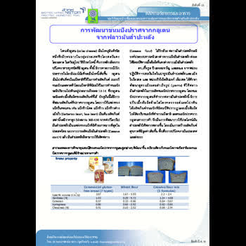 | ชื่อเรื่อง : การพัฒนาขนมปังปราศจากกลูเตนจากฟลาวมันสำปะหลัง |