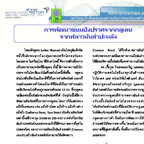 "การพัฒนาขนมปังปราศจากกลูเตนจากฟลาวมันสำปะหลัง".
