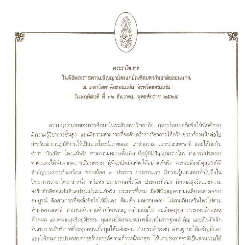 | คำสำคัญ : พระราโชวาท, มหาวิทยาลัยขอนแก่น |