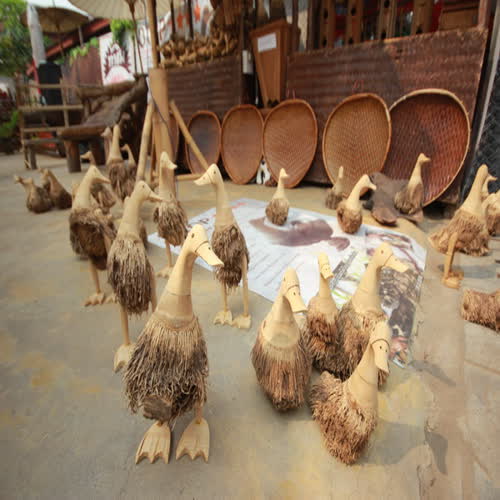 คำอธิบาย : เป็ดทำจากรากไม้ไผ่ เป็นของฝากจากถนนคนเดิน อ.เชียงคาน จ.เลย ได้รับรางวัล OTOP 4 ดาว ประจำปีพ.ศ. 2552 เริ่มทำครั้งแรกเมื่อปีพ.ศ. 2540 วิธีทำคือ นำรากไม้ไผ่มาแช่น้ำ EM เพื่อป้องกันมอดจากนั้นนำไปตากแดดประมาณ 1 เดือนเพื่อฆ่าเชื้อโรค โดยมีการผสมไม้มงคล ได้แก่ รากไผ่ ไม้สัก ไม้ยอ ไม้ขนุน ไม้สน ไม้พยุง มักนำต้นไผ่ไปใช้ในการแก้ฮวงจุ้ยและขับไล่สิ่งไม่ดีออกจากบ้าน |