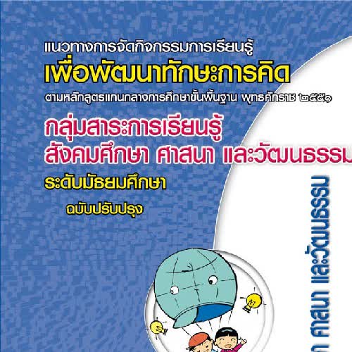 ชื่อเรื่อง : แนวทางการจัดกิจกรรมการเรียนรู้เพื่อพัฒนาทักษะการคิด ตามหลักสูตรแกนกลางการศึกษาขั้นพื้นฐาน พุทธศักราช ๒๕๕๑ กลุ่มสาระการเรียนรู้สังคมศึกษา ศาสนา และวัฒนธรรม |