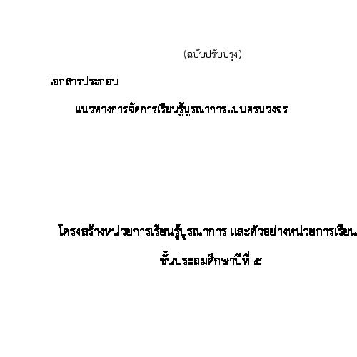 | ชื่อเรื่อง : โครงสร้างหน่วยการเรียนรู้บูรณาการ และตัวอย่างหน่วยการเรียนรู้ ชั้นประถมศึกษาปีที่ 5 |