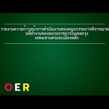 รายงานความก้าวหน้าการดำเนินงานของคณะกรรมการพิจารณาสถานที่ทำงานของหน่วยราชการในเขตกรุงเทพมหานครและเมืองหลัก ได้รับใบอนุญาตภายใต้ ให้เผยแพร่-โดยต้องระบุที่มาแต่ห้ามดัดแปลงและห้ามใช้เพื่อการค้า 3.0 Thailand.