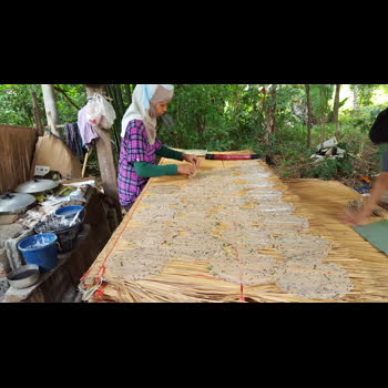 | คำอธิบาย : ข้าวแคบ เป็นอาหารพื้นเมืองของชาวล้านนา ทางภาคเหนือ ส่วนข้าวแคบของชาวลับแล จังหวัดอุตรดิตถ์ จะเป็นเอกลักษณ์คือสามารถนำมาฉีกรับประทานได้เลยโดยไม่ต้องทอด หรือปิ้ง (ภาษาเหนือเรียก หิง) หรือนำมาพันกับหมี่ เรียกหมี่พัน เป็นภูมิปัญญาท้องถิ่นของชาวลับแล ในการดัดแปลงอาหารที่มีวิธีการทำประเภทเดียวกันคือ ข้าวพัน ข้าวพันผัก ข้าวพันไข่ หมี่พัน ข้าวแคบปิ้ง |