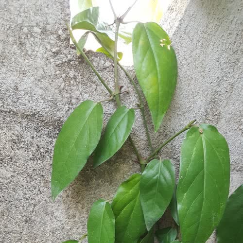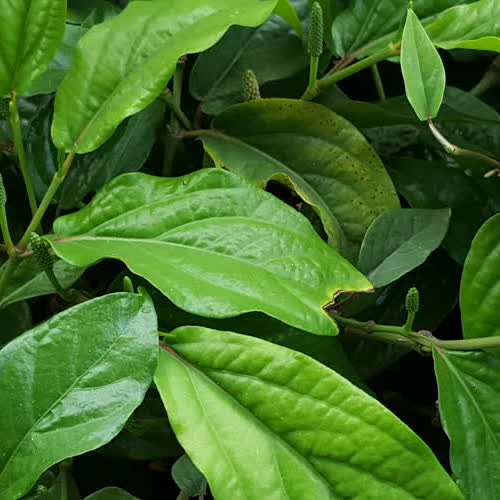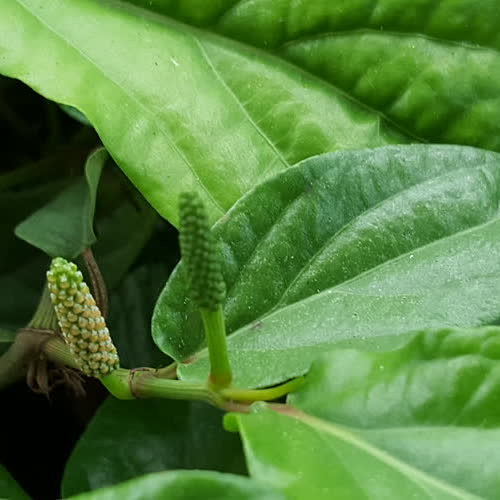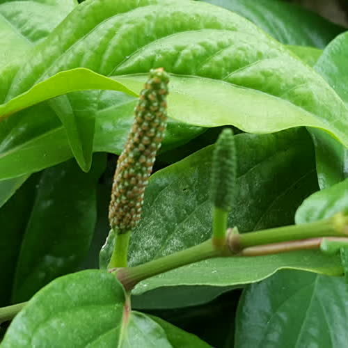 | คำอธิบาย : ดีปลี เป็นพืชสมุนไพรไทย เป็นไม้เลื้อยชนิดหนึ่ง คล้ายพริกไทย ใบรูปไข่ โคนมน ปลายแหลม เป็นพืชใบเดี่ยว คล้ายใบย่านางแต่ผิวใบมันกว่า บางกว่าเล็กน้อย ดอกเป็นรูปทรงกระบอกปลายมน เมื่อแก่จะมีผลเป็นสีแดง |