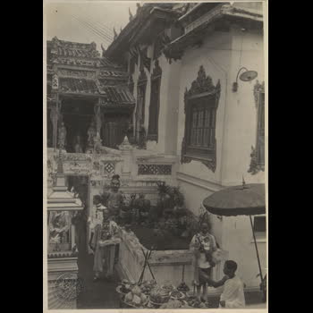 | คำอธิบาย : พระราชพิธีบรมราชาภิเษก ร.7 พ.ศ.2468 กล่อง 1 ทรงจุดเทียนเครื่องสังเวยเทวดา ที่หน้าหอพระสุราลัยพิมาน ก่อนเสด็จสรงมูรธาภิเษก |