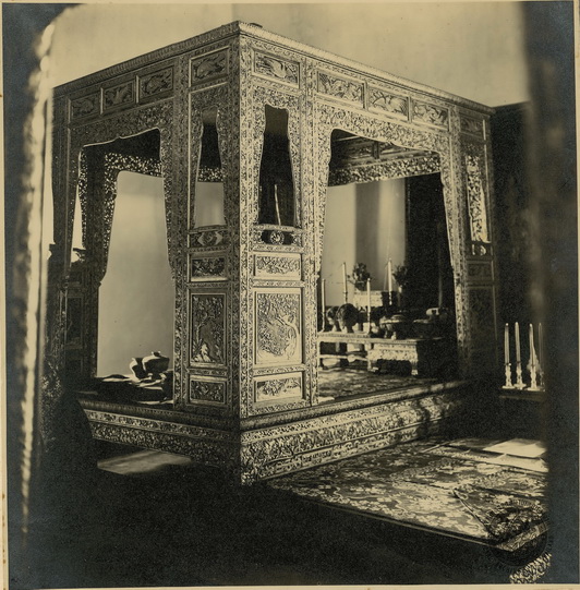 | คำอธิบาย : พระราชพิธีบรมราชาภิเษก ร.7 พ.ศ.2468 กล่อง 1 พระแท่นบรรทมในพระที่นั่งจักรพรรดิพิมาน |