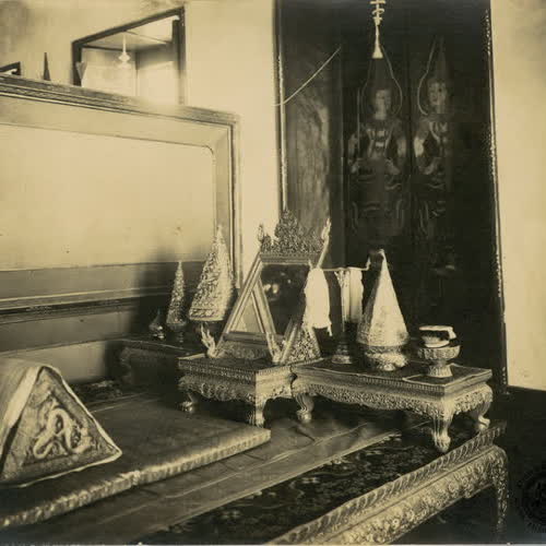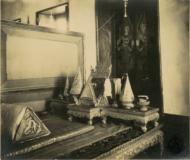 "พระราชพิธีบรมราชาภิเษก ร.7 พ.ศ.2468 (เครื่องพระสำอางค์ ในพระที่นั่งจักรพรรดิพิมาน)".