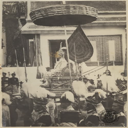 | ชื่อเรื่อง : พระราชพิธีบรมราชาภิเษก ร.7 พ.ศ.2468 (พระราชยานเทียบเกยวัดบวรนิเวศ) |