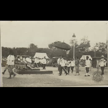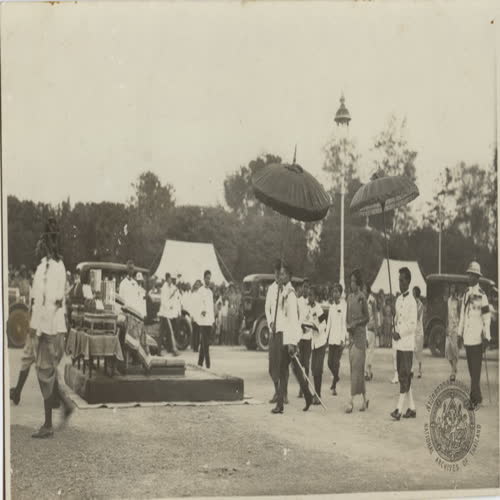 | ชื่อเรื่อง : พระราชพิธีถวายบังคมพระบรมรูปทรงม้า พ.ศ.2472 ร.7 เสด็จลงจากพระที่นั่งหน้าพระบรมรูปทรงม้า |