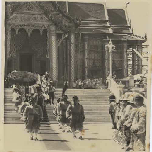 | ชื่อเรื่อง : เสด็จปราสาทเทพบิดร เนื่องในวันเฉลิมพระชนมพรรษา พระเจ้าอยู่หัวเสด็จลงจากปราสาทพระเทพบิดร เพื่อถวายบังคมพระบรมรูป (พ.ศ.2474) |