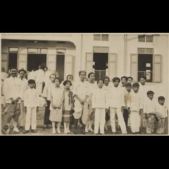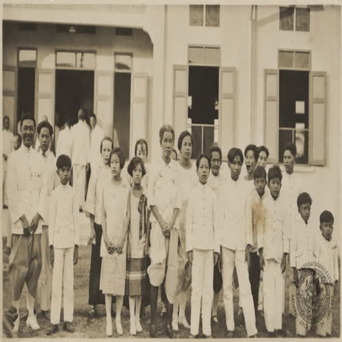 | ชื่อเรื่อง : ครอบครัวปฏินันท์ เฝ้าสมเด็จพระพันวัสสาในการเปิดตึกปฏินันท์ ซึ่งอุทิศให้พระยาปฏินันท์ พ.ศ.2472 |
