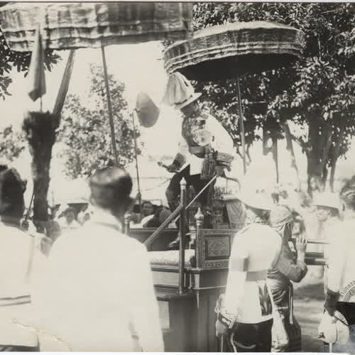 | คำอธิบาย : ร.7 เสด็จมณฑลฝ่ายเหนือ พ.ศ.2469 พิธีรับและขึ้นระวางสมโภชพระเศวตคชเดชน์ดิลกพระบาทสมเด็จพระเจ้าอยู่หัวเสด็จพระราชดำเนินโดยพระเสลี่ยงมายังโรงราชพิธี เช้าวันที่ 16 พฤศจิกายน |