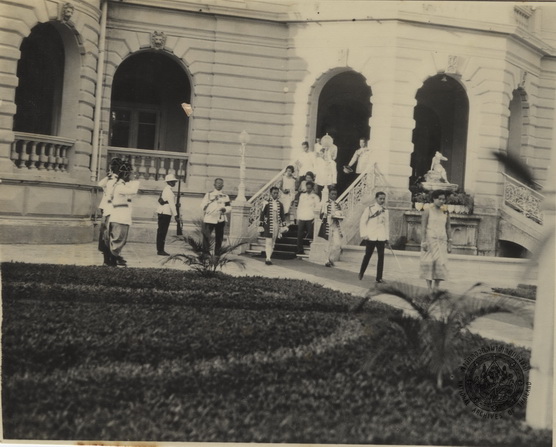 "งานเฉลิมพระชนมพรรษาสมเด็จพระนางเจ้ารำไพพรรณี พระบรมราชินี  เสด็จลงจากพระที่นั่งบรมพิมาน (พ.ศ.2474)".