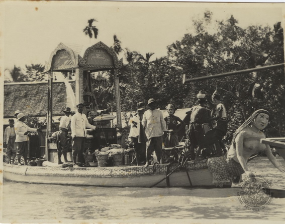 | ชื่อเรื่อง : ร.7เสด็จทางสถลมารค พระราชทานกฐิน วันที่ 28 ตุลาคม พ.ศ.2474 กฐินกรมโขลน วัดสุวรรณคีรี รูปเรือผ้าไตร เข้าเทียบท่าวัดสุวรรณคีรี |