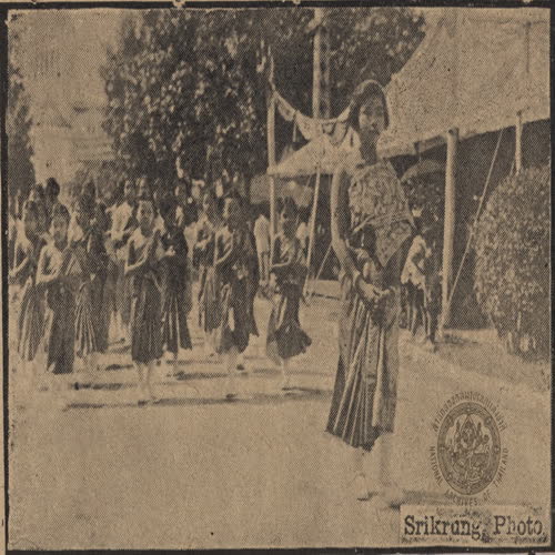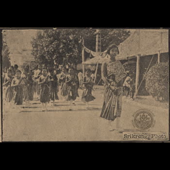 | คำอธิบาย : สมุดภาพแห่สลากภัตต์ในพิธีรับและขึ้นระวางสมโภชพระเศวตคชเดชน์ดิลก พฤศจิกายน 2470ขบวนหาบสลากภัตต์ของพระบรมวงศานุวงศ์ฝ่ายใน ในการสมโภชพระเศวตคชเดชน์ดิลก ที่พระราชวังดุสิต วันที่ 16 พฤศจิกายน พ.ศ.2470 |