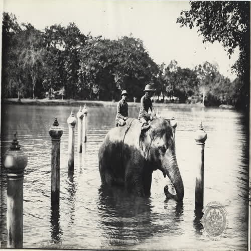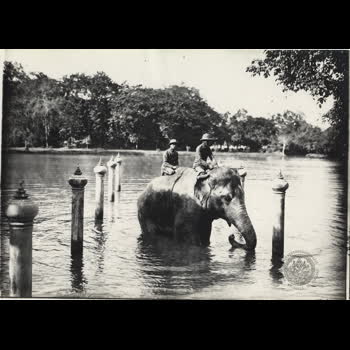 | คำอธิบาย : ภาพควาญช้างนำช้างเผือกอาบน้ำ ที่เขาดินวนา เมื่อคราวร.7ได้มาจากเชียงใหม่ |