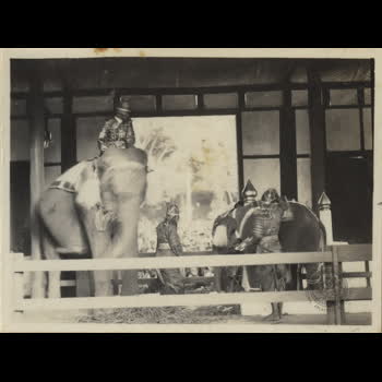 | คำอธิบาย : ร.7 เสด็จมณฑลฝ่ายเหนือ พ.ศ.2469 พิธีรับและขึ้นระวางสมโภชพระเศวตคชเดชน์ดิลกช้างเผือกกับช้างแม่อยู่ในโรงสมโภช พิธีสมโภชขึ้นระวางช้างเผือกใน ร.7 |
