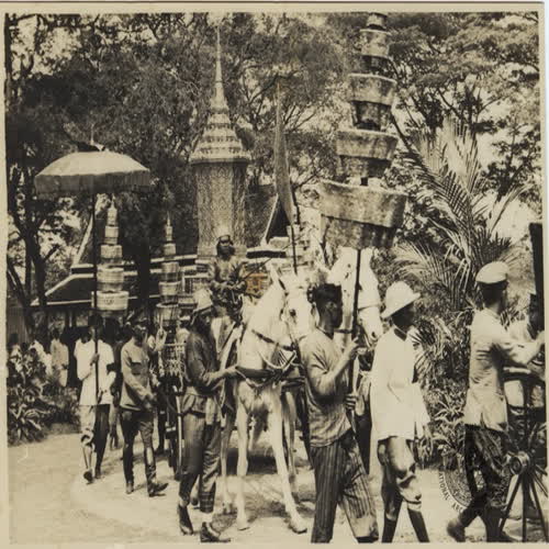 | คำอธิบาย : เหตุการณ์สำคัญต่างๆ ปี พ.ศ.2474 ร.7และพระราชินีเสด็จพระราชทานเพลิงศพ ท่านผู้หญิงยมราช ณ วัดปทุมวนาราม วันที่ 23 มีนาคม พ.ศ.2474 โกศศพท่านผู้หญิงยมราช (ตลับ สุขุม) เวียนเมรุ |