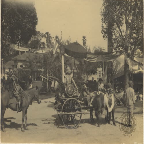 | คำอธิบาย : พิธีสมโภชขึ้นระวางช้างเผือกใน ร.7 "ร.7 เสด็จมณฑลฝ่ายเหนือ พ.ศ.2469 พิธีรับและขึ้นระวางสมโภชพระเศวตคชเดชน์ดิลกขบวนแห่ต่างๆ" |