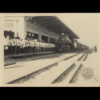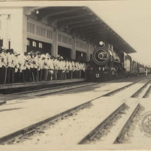 "ร.7 เสด็จมณฑลฝ่ายเหนือ พ.ศ.2469 พิธีรับและขึ้นระวางสมโภชพระเศวตคชเดชน์ดิลก ขบวนรถไฟนำช้างพลายสำคัญมาถึงสถานีจิตรลดา".