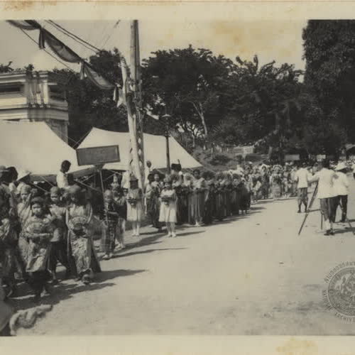 | คำอธิบาย : พิธีสมโภชขึ้นระวางช้างเผือกใน ร.7 "ร.7 เสด็จมณฑลฝ่ายเหนือ พ.ศ.2469 พิธีรับและขึ้นระวางสมโภชพระเศวตคชเดชน์ดิลกขบวนแห่ต่างๆ" |