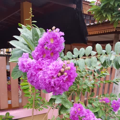 | คำอธิบาย : ม่วงส่าหรี เป็นลูกผสมระหว่าง ต้นอินทนิล กับ ยี่เข่ง นิยมปลูกเป็นไม้ดอกไม้ประดับ เนื่องจากดอกมีสีสันสวยงาม และต้นไม่สูงมาก |