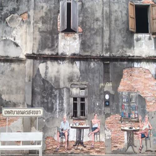 | คำสำคัญ : ศิลปะข้างถนน, เทศบาลนครสงขลา, อาคารเก่าคลาสสิกสไตล์ชิโนโปรตุกีส, แหล่งท่องเที่ยว, ศิลปะแนวสตรีทอาร์ต, ภาพวาดสีน้ำ, Street Art, ถนนนางงาม |