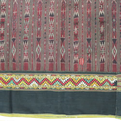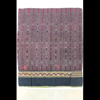 | คำอธิบาย : ขนาดของผ้า: 148x89 ซม.ชื่อลายผ้า: ผ้ามัดหมี่ หมี่น้อยลายจกครามต่อตีนซิ่นจกลายกามผ้าทอจากการประกวดของวิทยาลัยชุมชน 2559ประเภทหมี่น้อย ลาวครั้ง ต่ำกว่า 100 ปีได้รางวัลที่ |