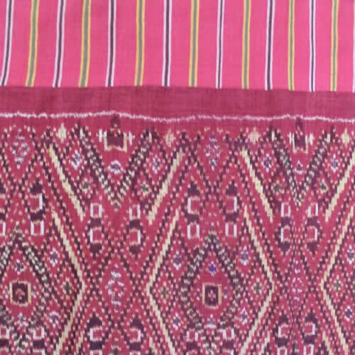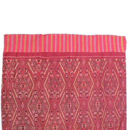 | คำอธิบาย : ผ้าทอจากการประกวดของวิทยาลัยชุมชน 2559ประเภทหมี่ล้วน ธรรมชาติ ดั้งเดิมได้รางวัลที่ 2ขนาดผ้า หน้าแคยสีผ้า สีแดงลายผ้า ลายโครม เหลืองใหญ่ ลายโบราณเนินขาม |