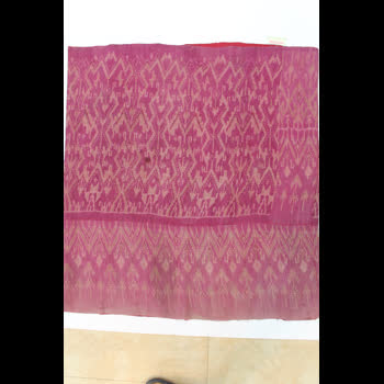 | คำอธิบาย : ผ้าทอจากการประกวดของวิทยาลัยชุมชน 2559ประเภทหมี่ล้วน ธรรมชาติ ดั้งเดิมได้รางวัลที่ 3ขนาดผ้า 86*79 cmสีผ้า สีแดงครั่งลายผ้า ผ้าซิ่นหมี่ โรจน์ตางตีน ลายพญานาคย้อมครั่งอายุผ้า 109 ปี |